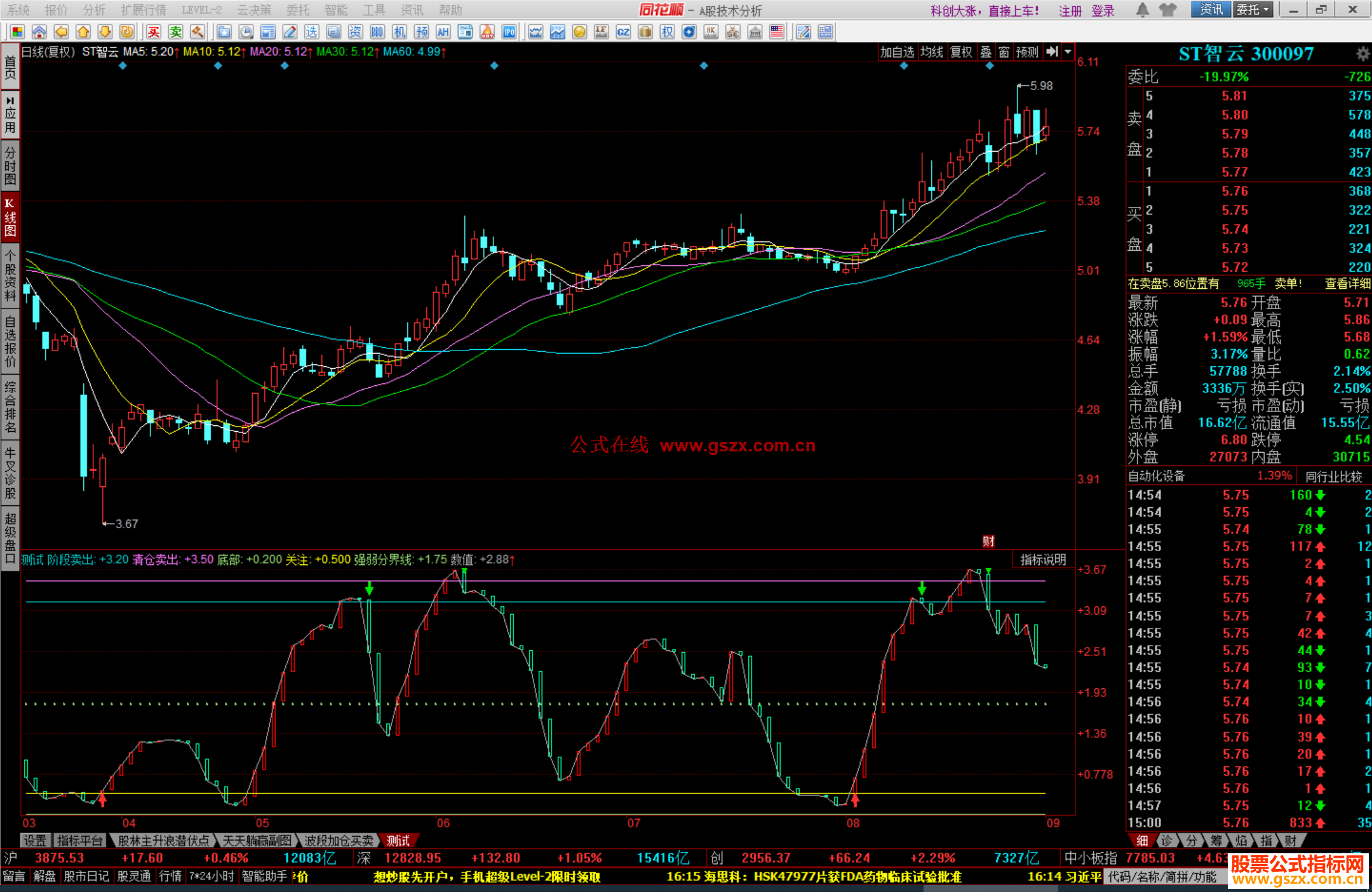 STICKLINE(动力线<=REF(动力线,1) ,动力线 ,REF(动力线,1),5 ,1),COLOR9fff00;
