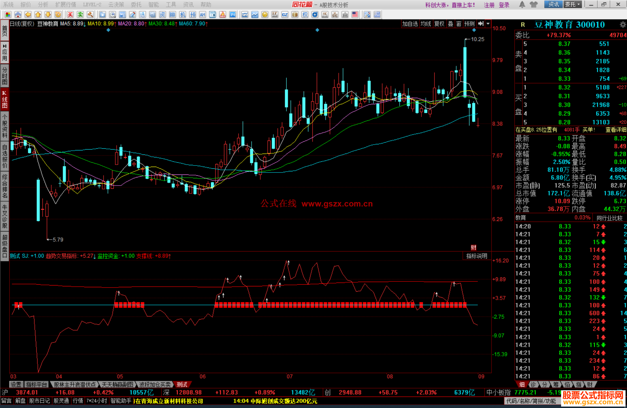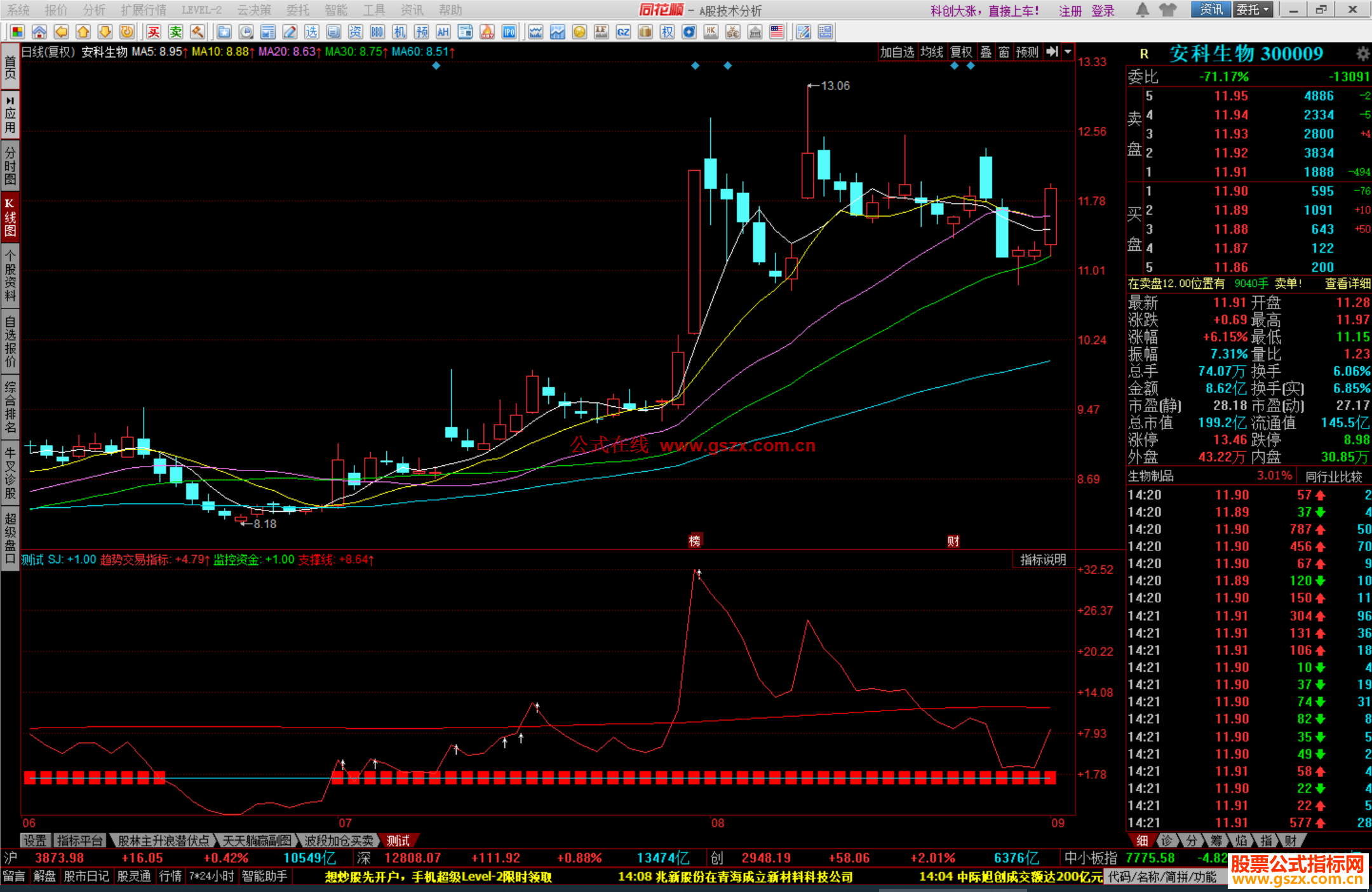 趋势交易指标:sj*(((A个股趋势 - A大盘趋势) / A大盘趋势) * 100);