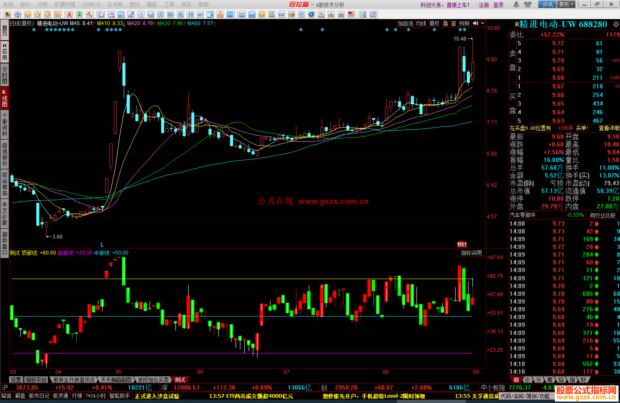Var8:=SMA(MAX(LOW-Var7,0),6,1)/SMA(ABS(LOW-Var7),6,1)*100;