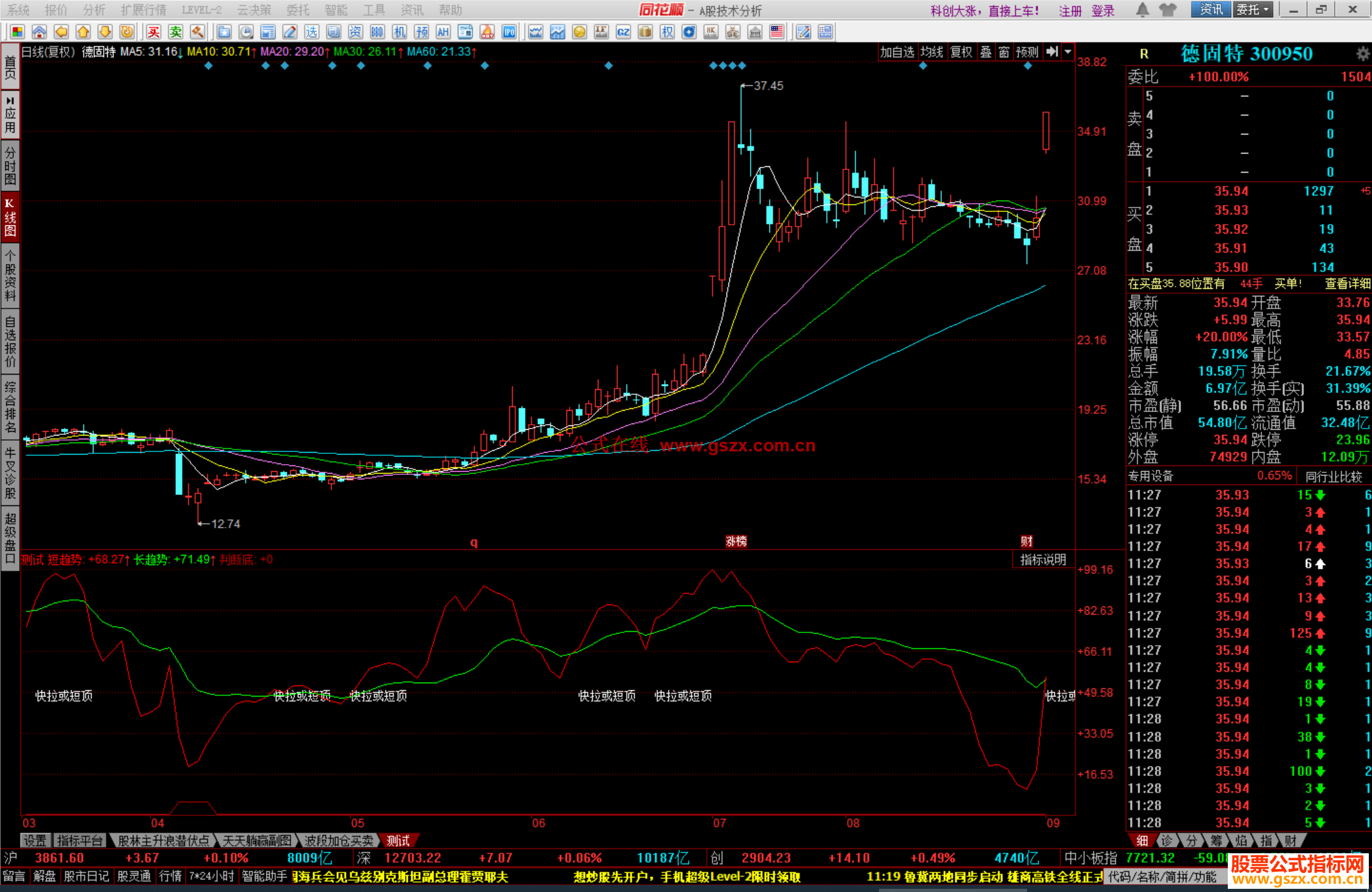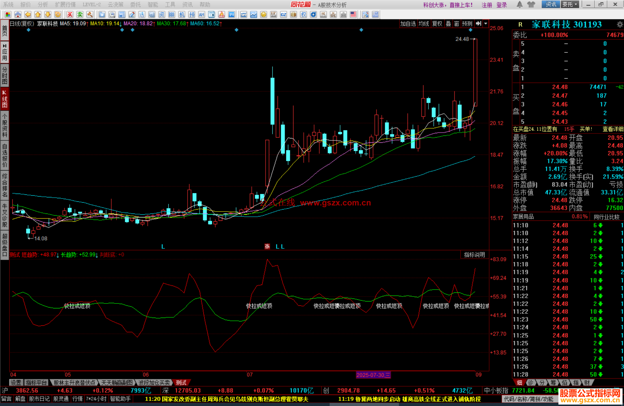底部:STICKLINE(短趋势<10 AND 判断底>0,0,30,6,1);