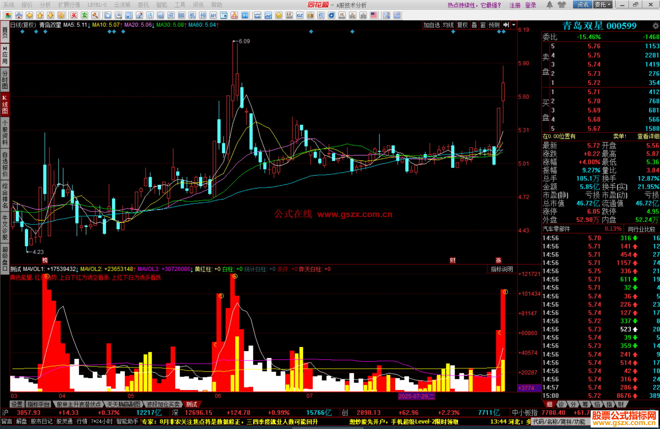 MAVOL1:MA(VOLUME,5),LINETHICK1,COLORFFFFFF;