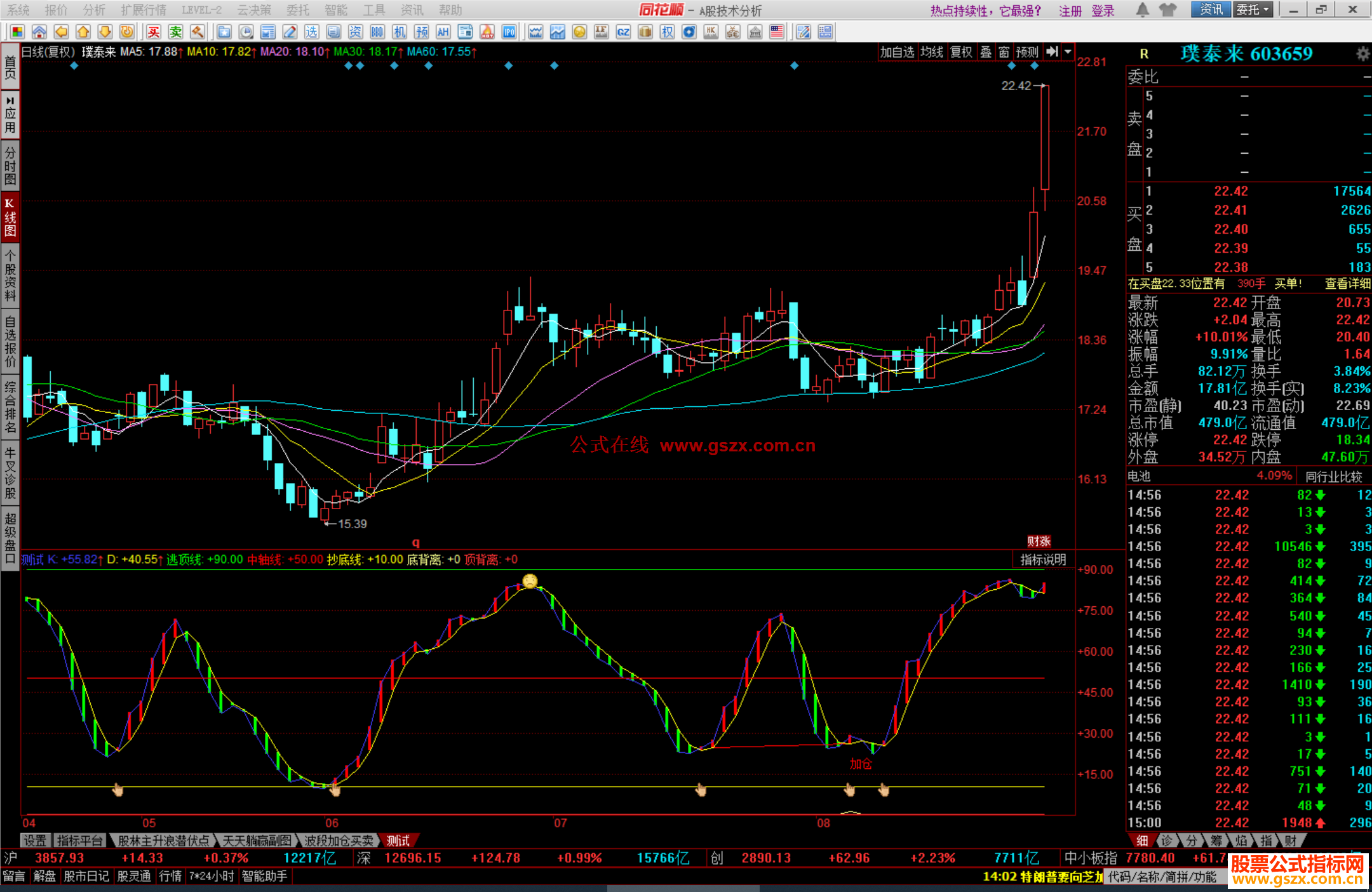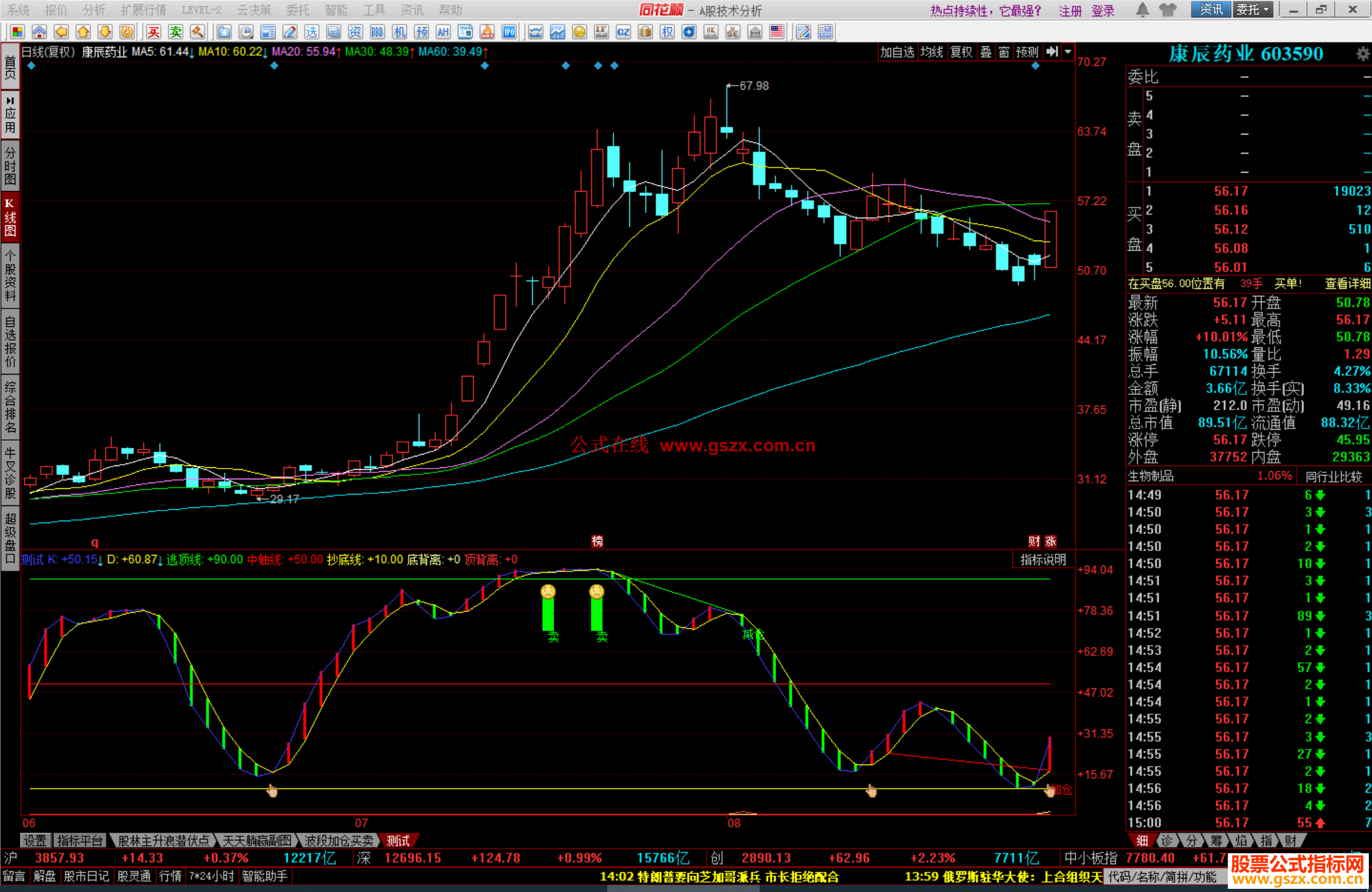 底背离:REF(CLOSE,A1+1)>CLOSE AND K>REF(K,A1+1) AND CROSS(K,D);