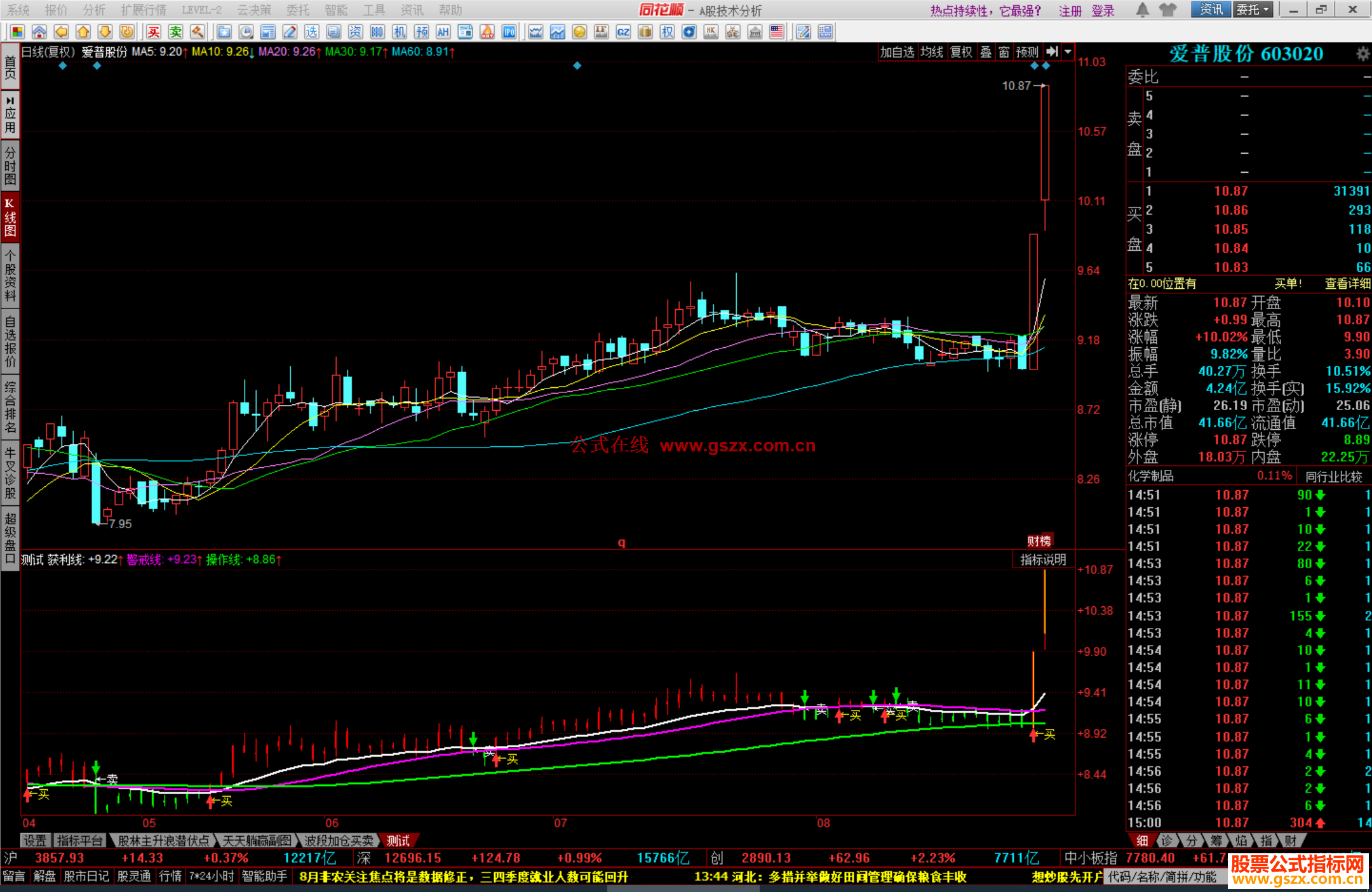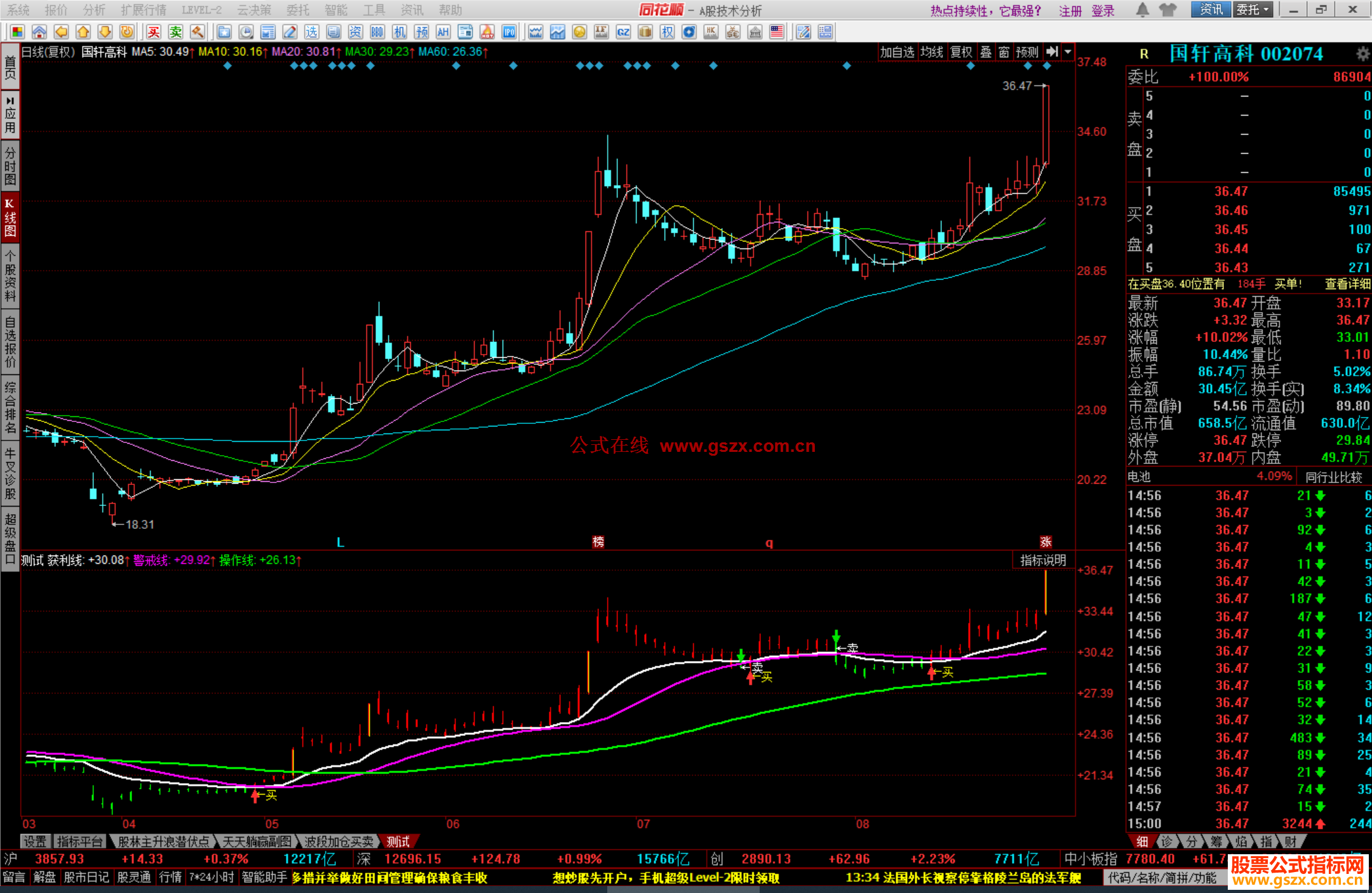 警戒线:EMA(X,13),LINETHICK2,COLORFF00FF;
