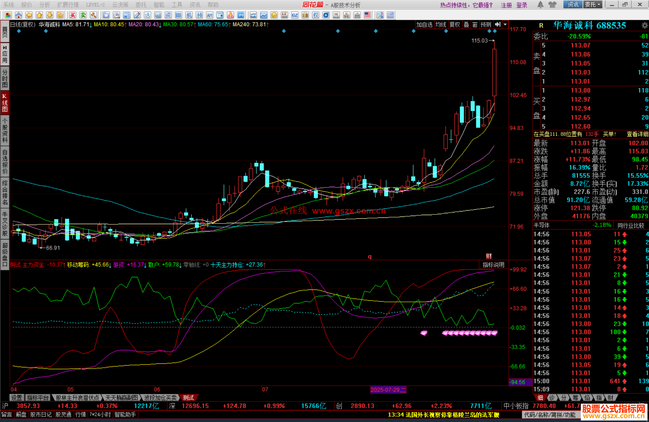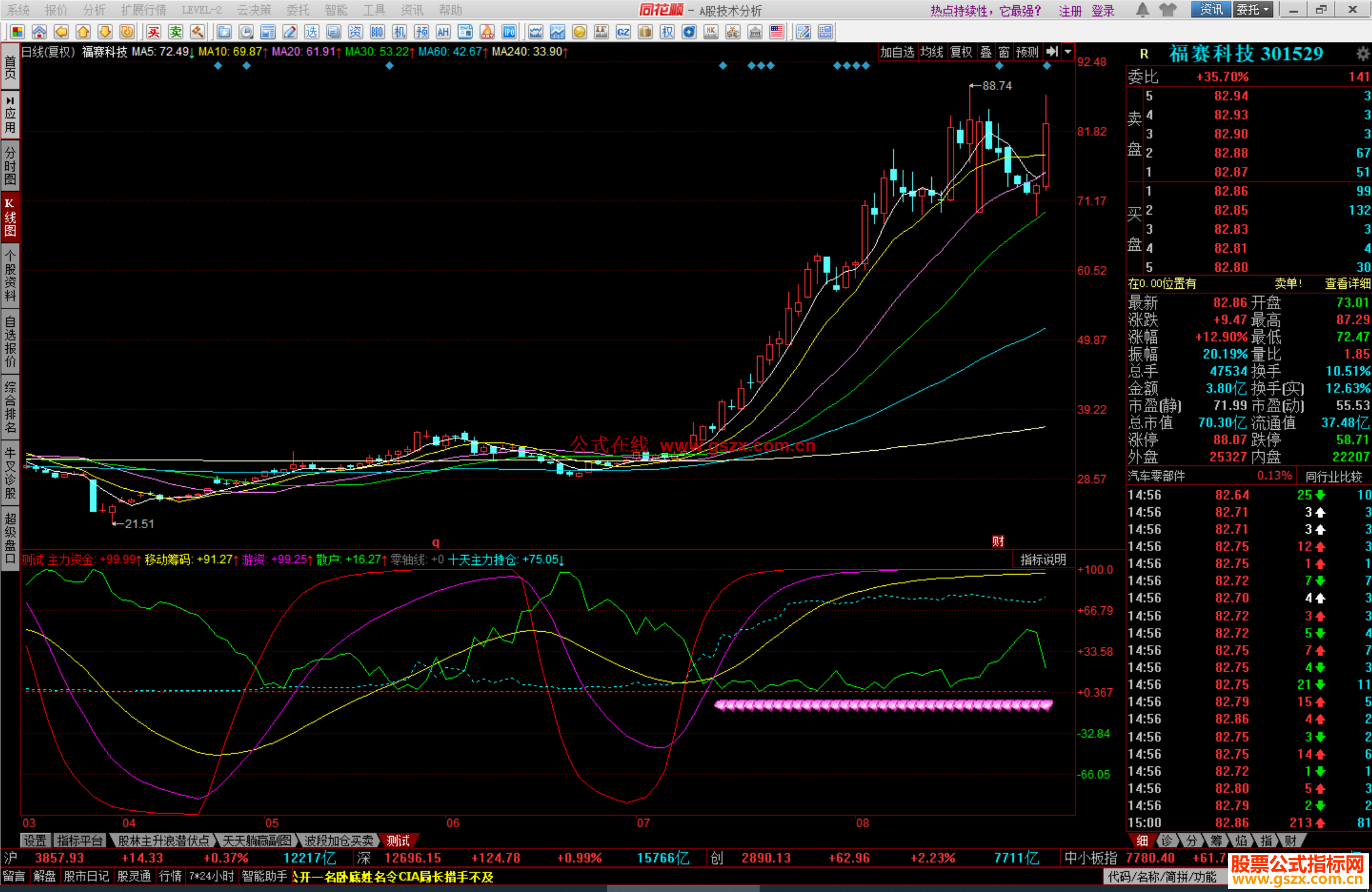 主力资金:((100)*(EMA(EMA(MTM,6),6)))/(EMA(EMA(ABS(MTM),6),6)),colorred,LINETHICK1;