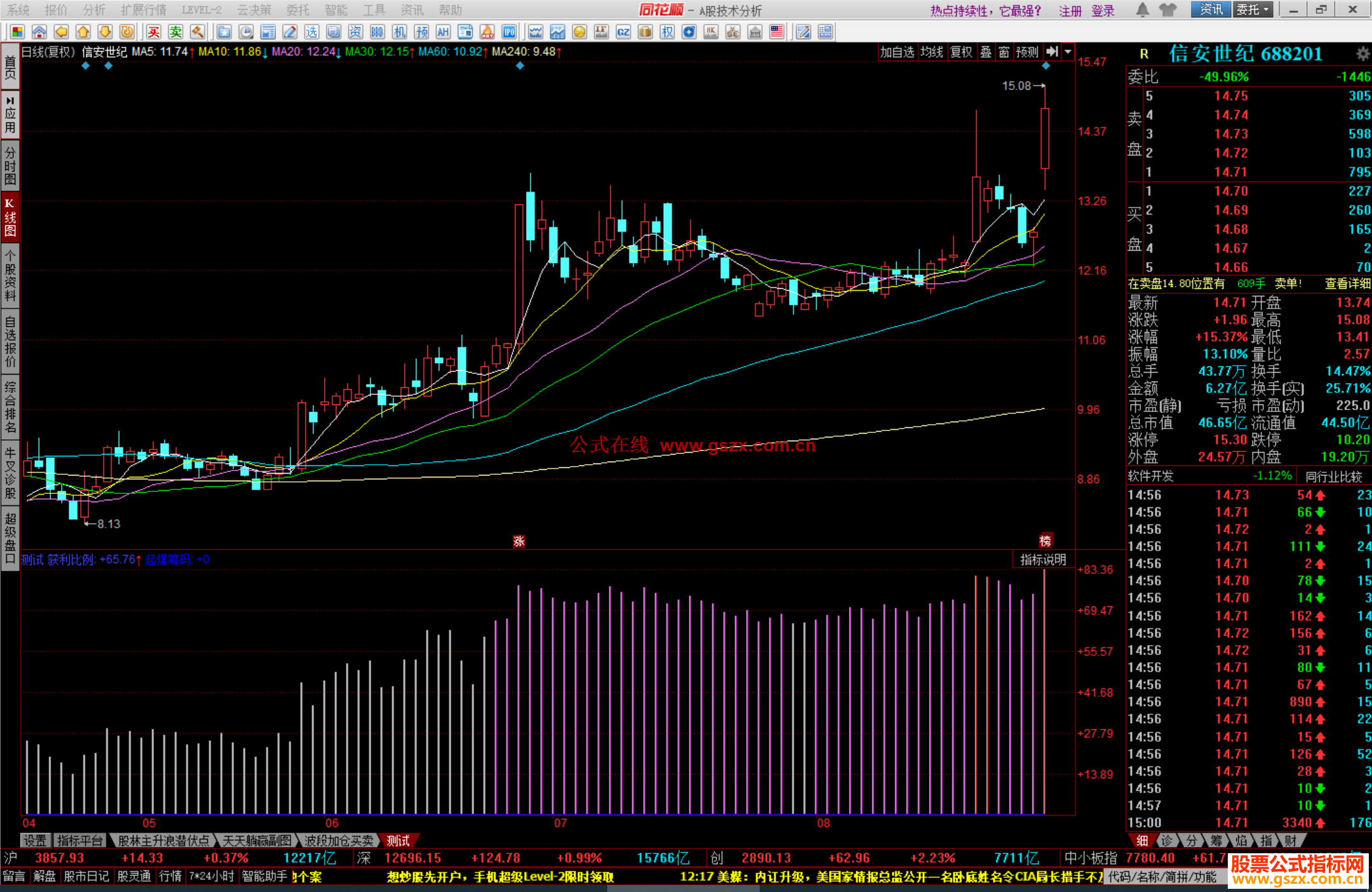 STICKLINE(获利比例>=65 AND 获利比例<80,获利比例,0,1,0),colormagenta;