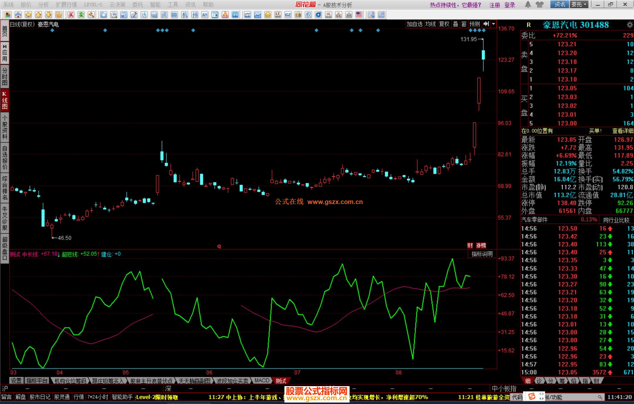 IF(超短线>=REF(超短线,1),超短线,DRAWNULL), colorred,LINETHICK2;