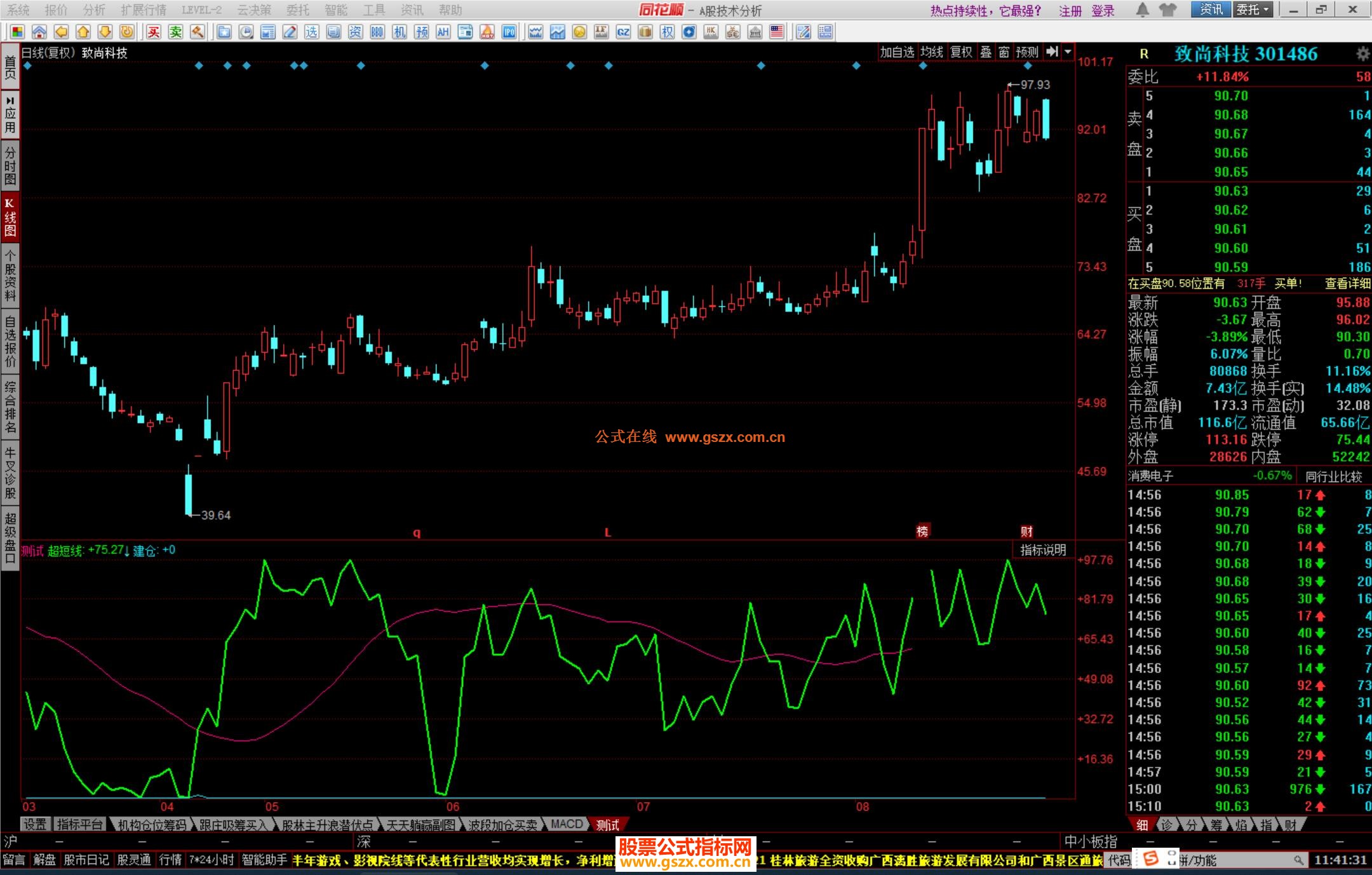 顶部区域:=(短期线80) AND (REF(超短线,1)>95 OR REF(超短线,2)>95 ) AND 中长线>60 AND 超短线<83.5