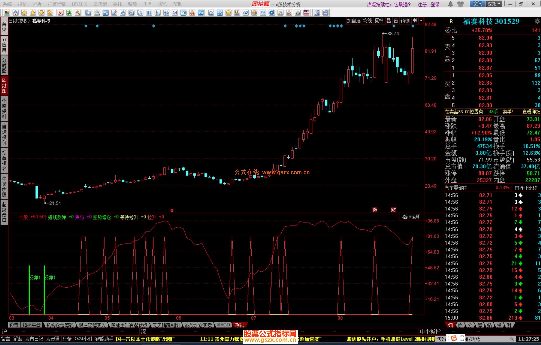 大盘:Ema(100*(INDEXC-LLV(INDEXL,34))/(HHV(INDEXH,34)-LLV(INDEXL,34)),3),COLORE67010,LINETHICK2;