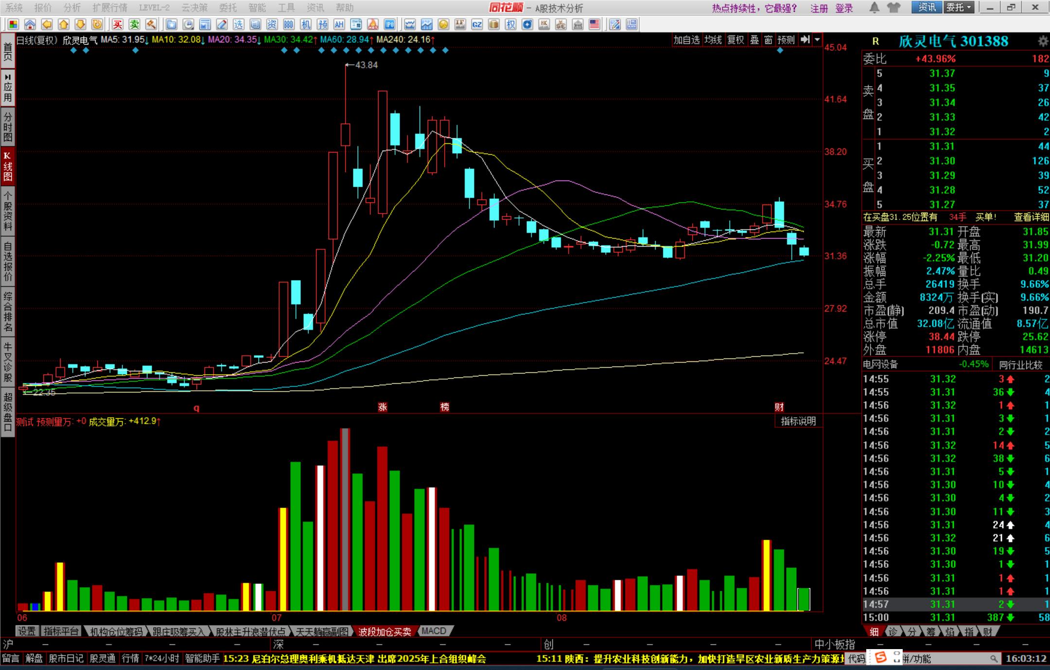 成交量万:VOL/10000,COLOR00ffff;//线形不输出