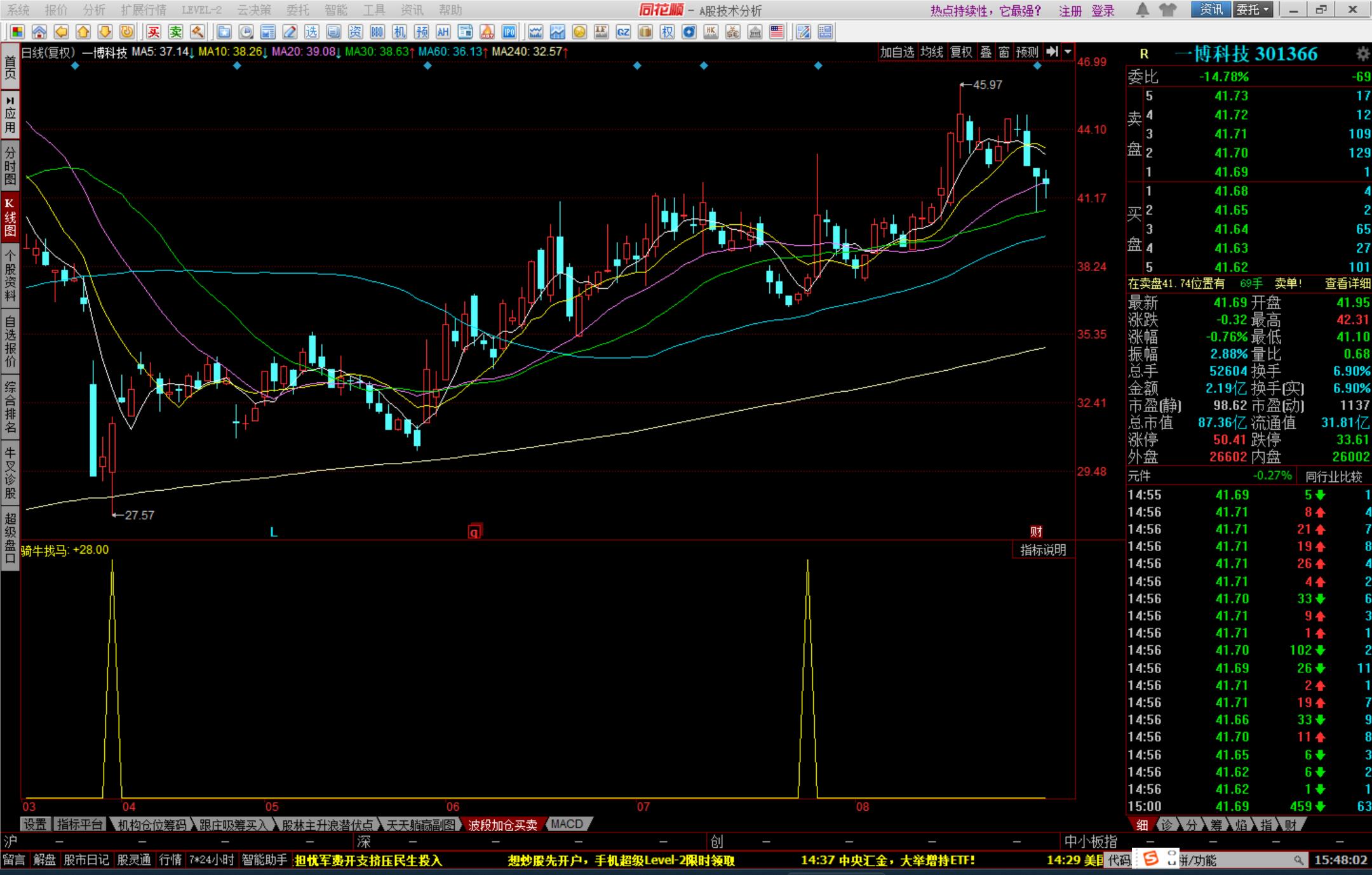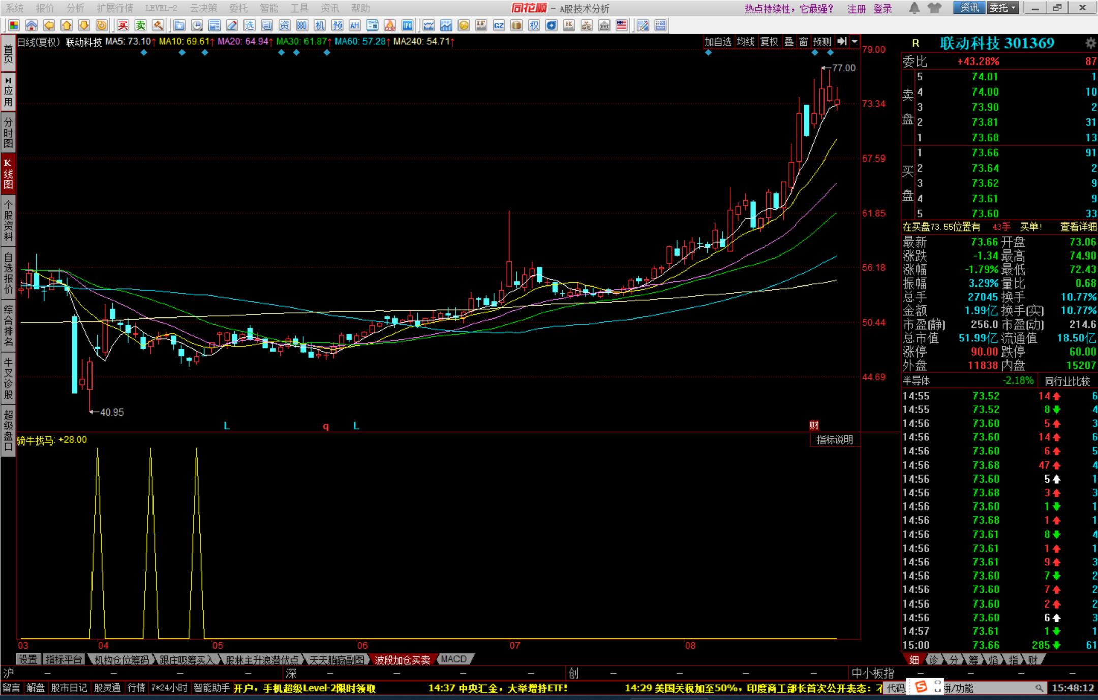 牛股:=SMA(MAX(CLOSE-VAR3,0),7,1)/SMA(ABS(CLOSE-VAR3),7,1)*100,COLORRED;
